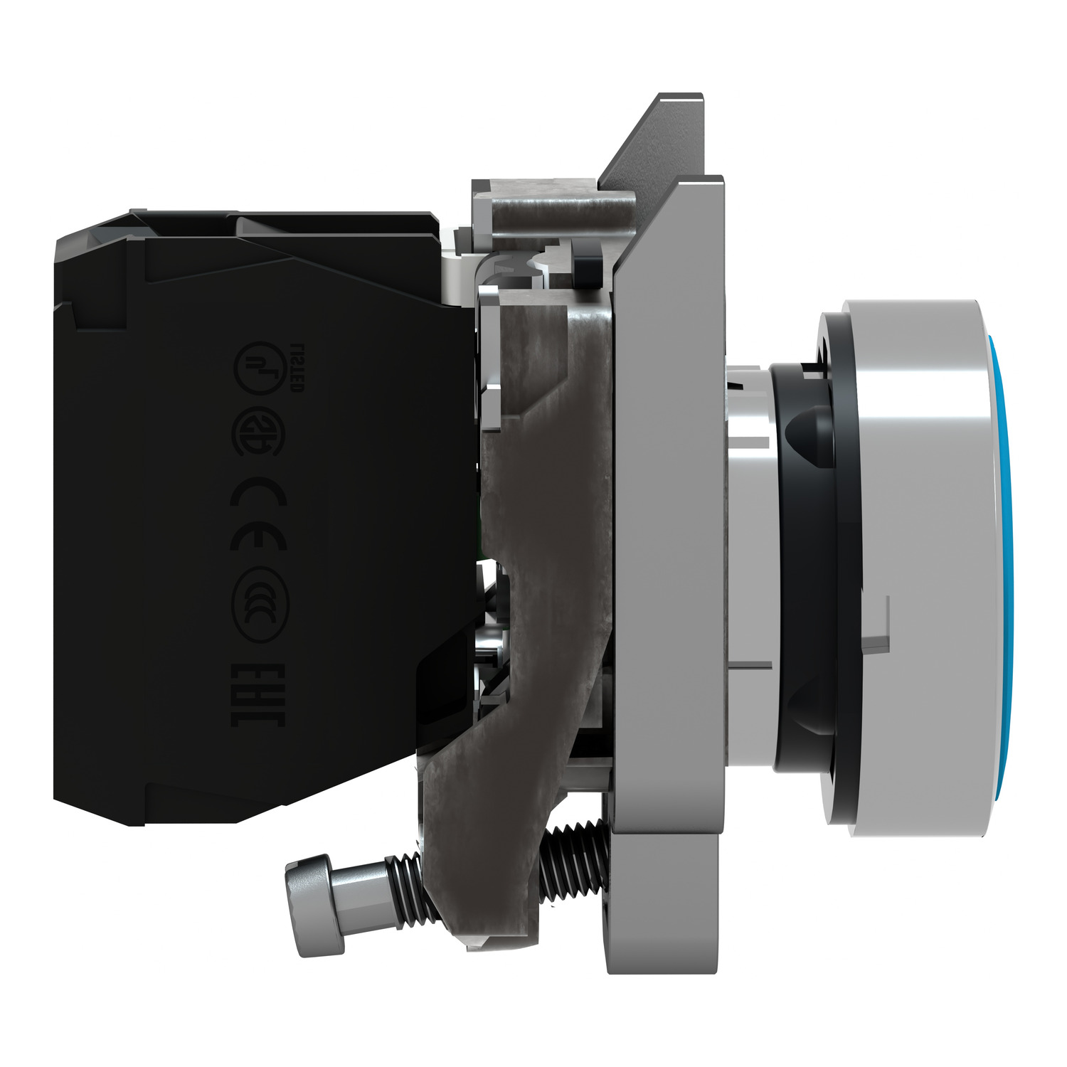 plavi kompletni udubljeni taster Ø22 sa povratkom 1NO - neobeleženo