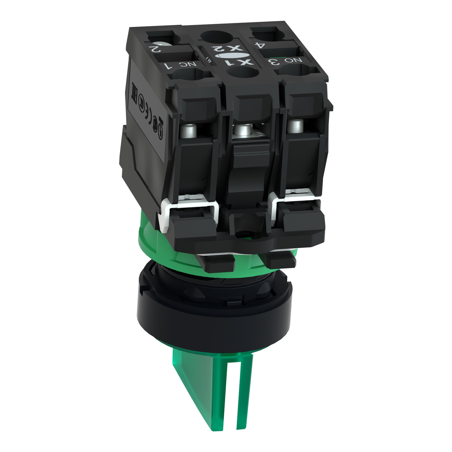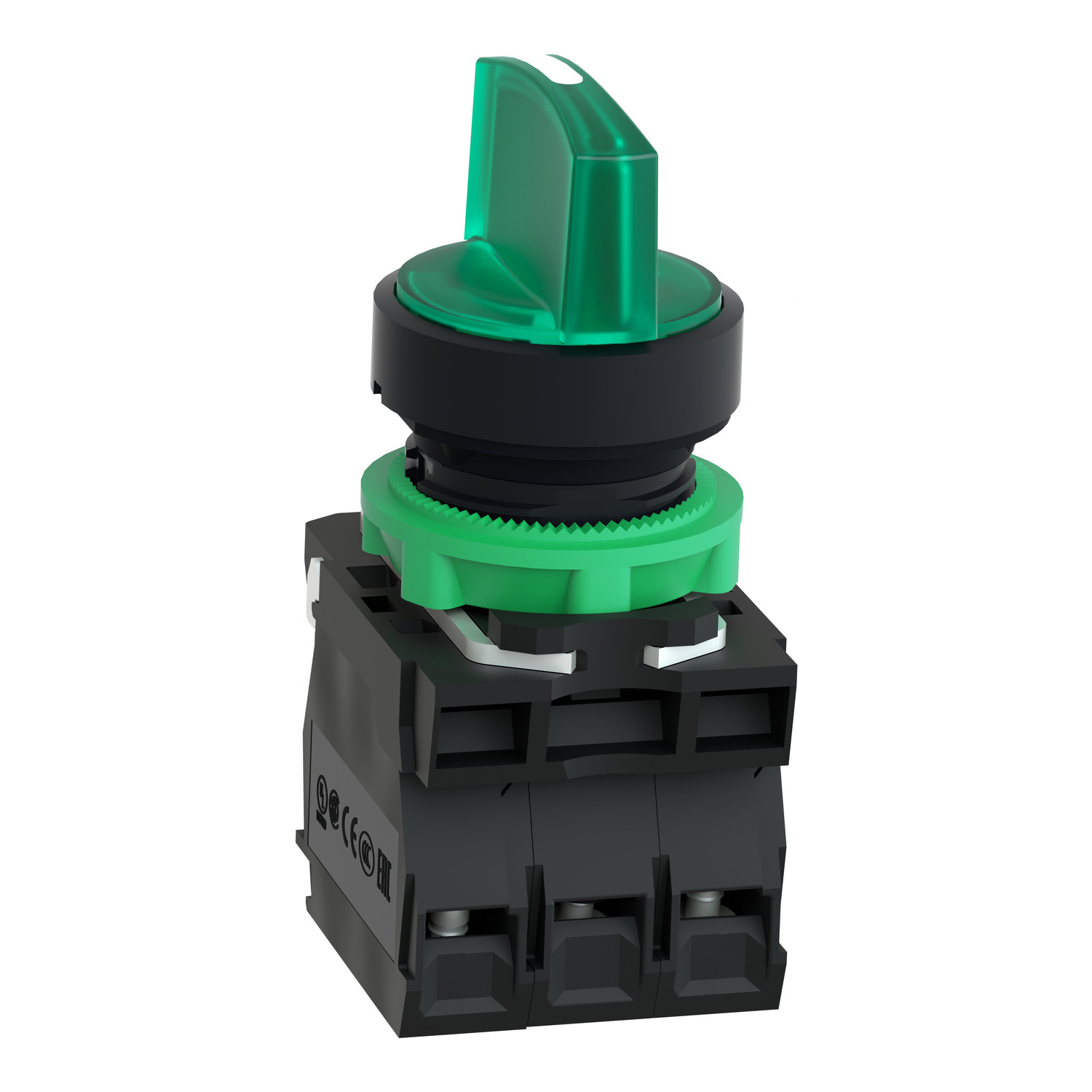 zeleni kompletni izborni prekidač Ø22 3-pozicije bez povratka 1NO+1NC 230V