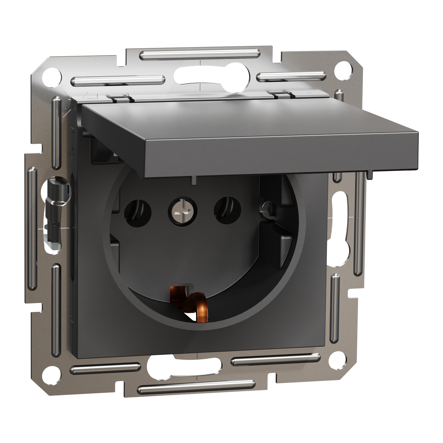 jednostruka utičnica sa uzemljenjem sa strane sa poklopcem, bez rama, antracit