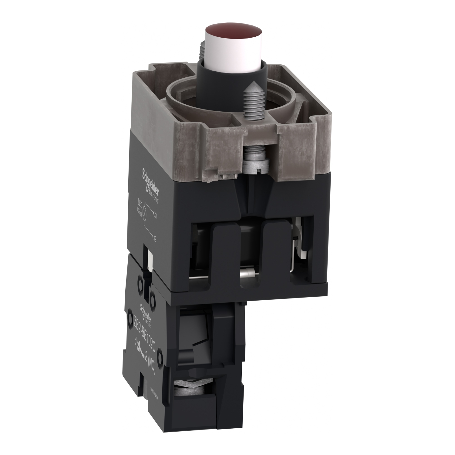 Svetlosni blok sa telom i montažnim ramom, Easy Harmony XB2, metalni, crveni, sijalica 24V DC LED, 24V AC/DC, 1NC
